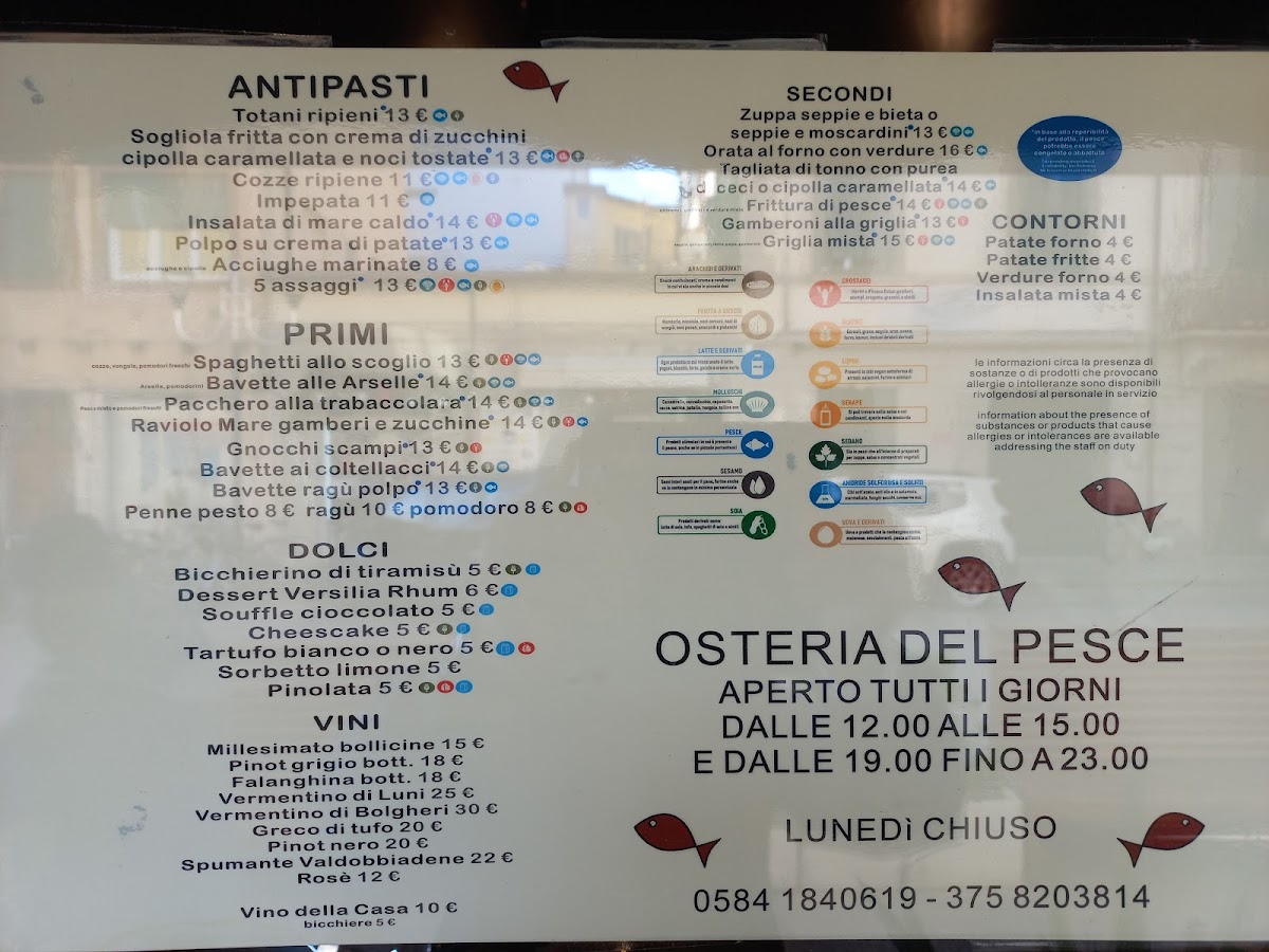 Welcome to OSTERIA DEL PESCE, a delightful seafood haven nestled in the heart of Viareggio, Italy. This charming restaurant offers a tantalizing array of dishes that celebrate the rich flavors of the sea. The menu features delectable ANTIPASTI such as the stuffed squid and polpette di gamberi, perfect for sparking your appetite. Dive into the PRIMI options, including spaghetti allo scoglio and risotto di mare, where fresh ingredients shine through each dish.